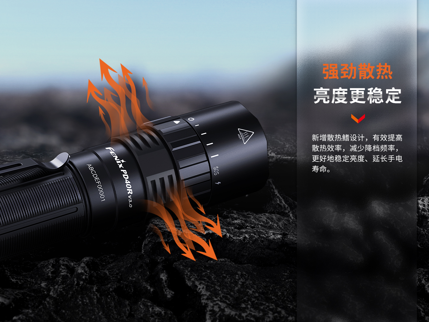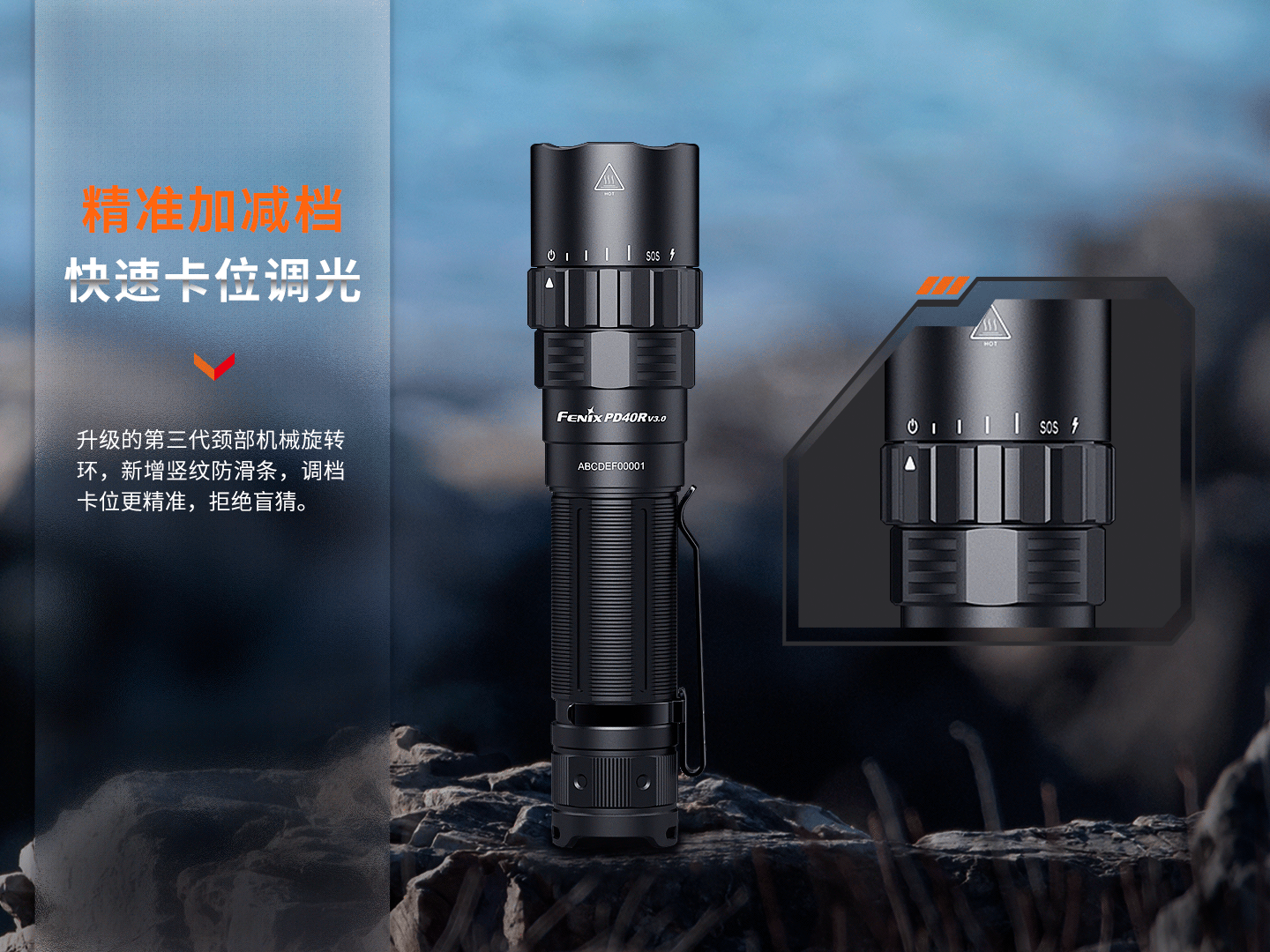 Fenix PD40R V3.0是一款超高亮機械旋轉調光手電,它的主要亮點在于: