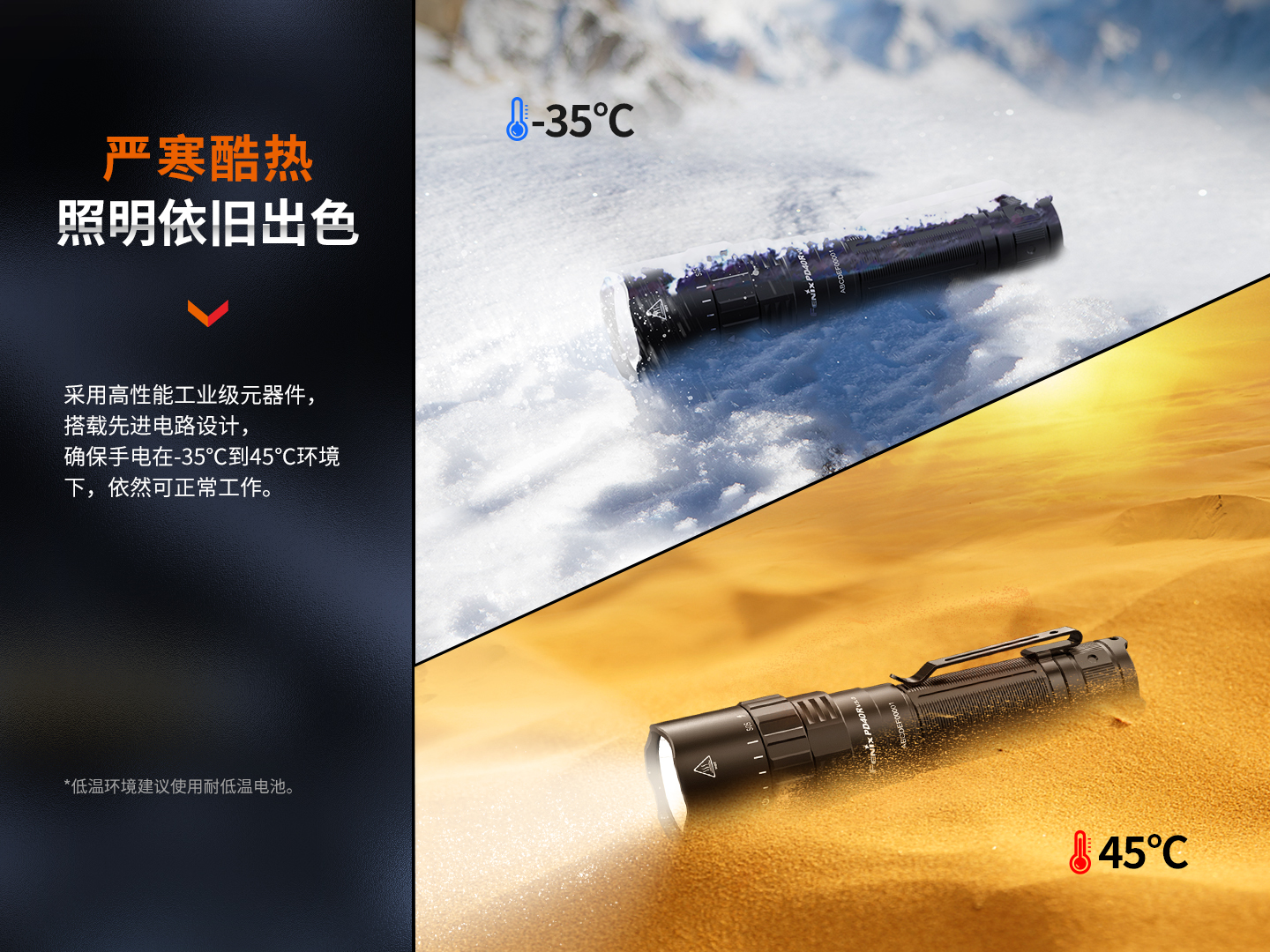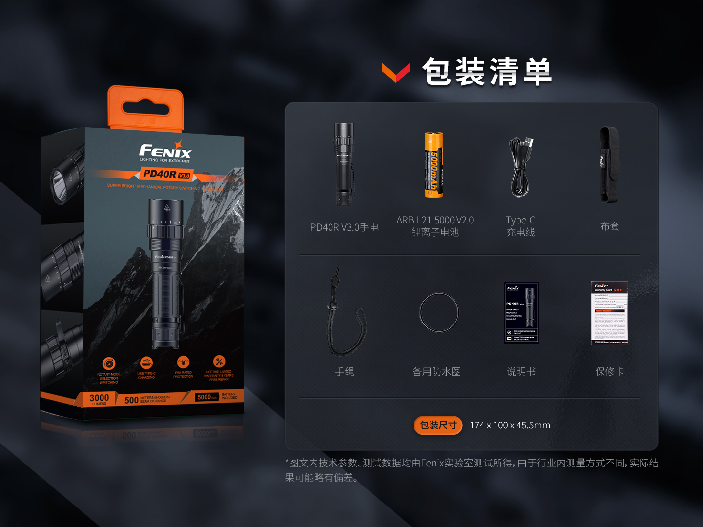 PD40R V3.0標配1節(jié)Fenix ARB-L21-5000 V2.0電池。Fenix ARB-L21-5000不兼容PD40R V3.0,因為ARB-L21-5000過流保護值最低為14A,PD40R V3.0最大工作電流會超過14A,容易啟動電池保護機制導致手電熄滅。