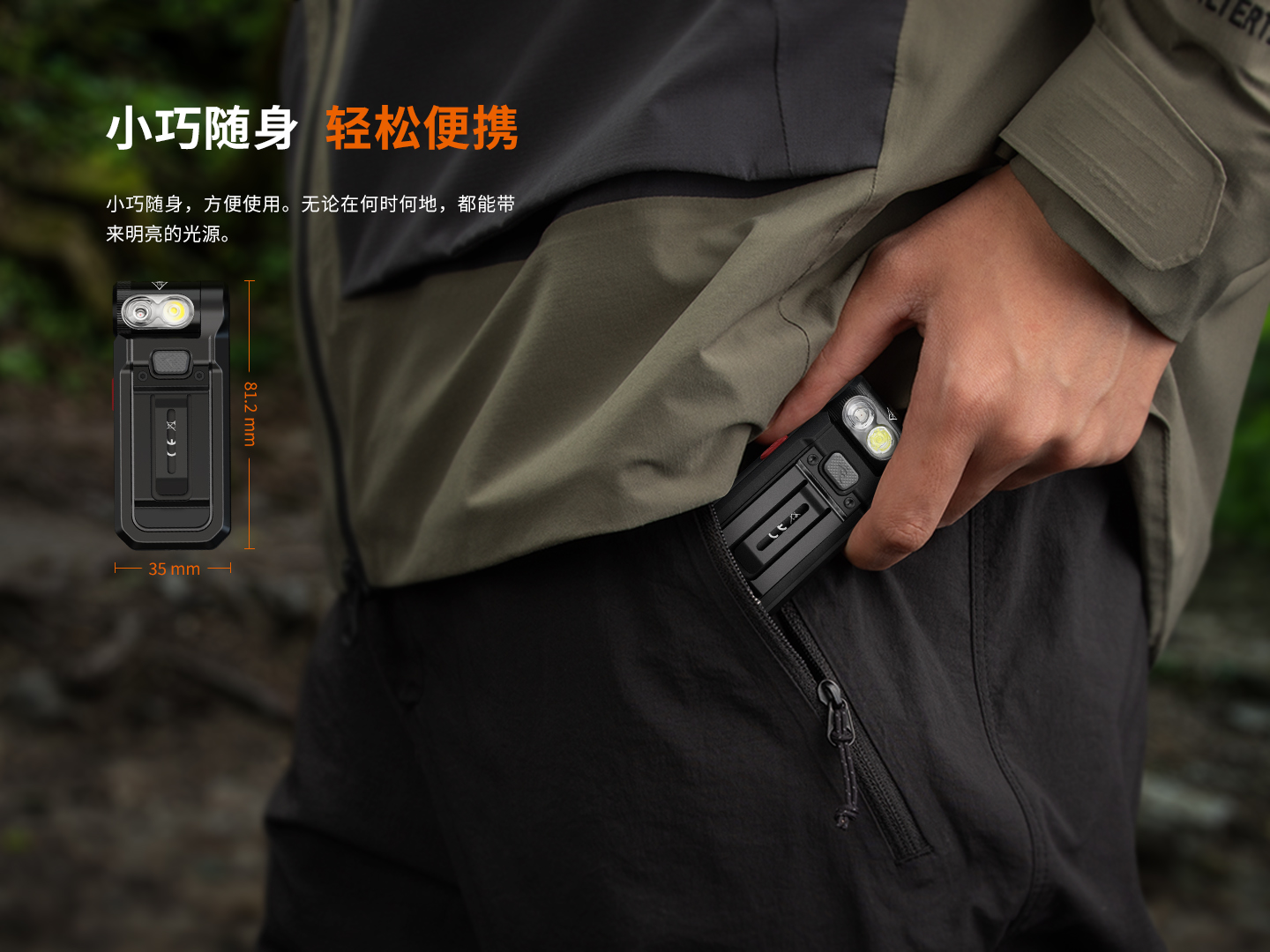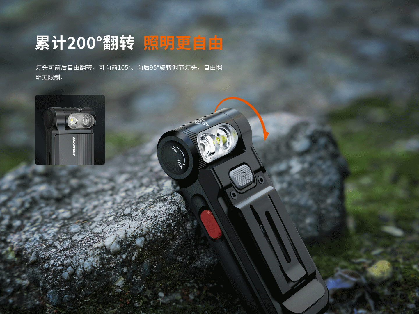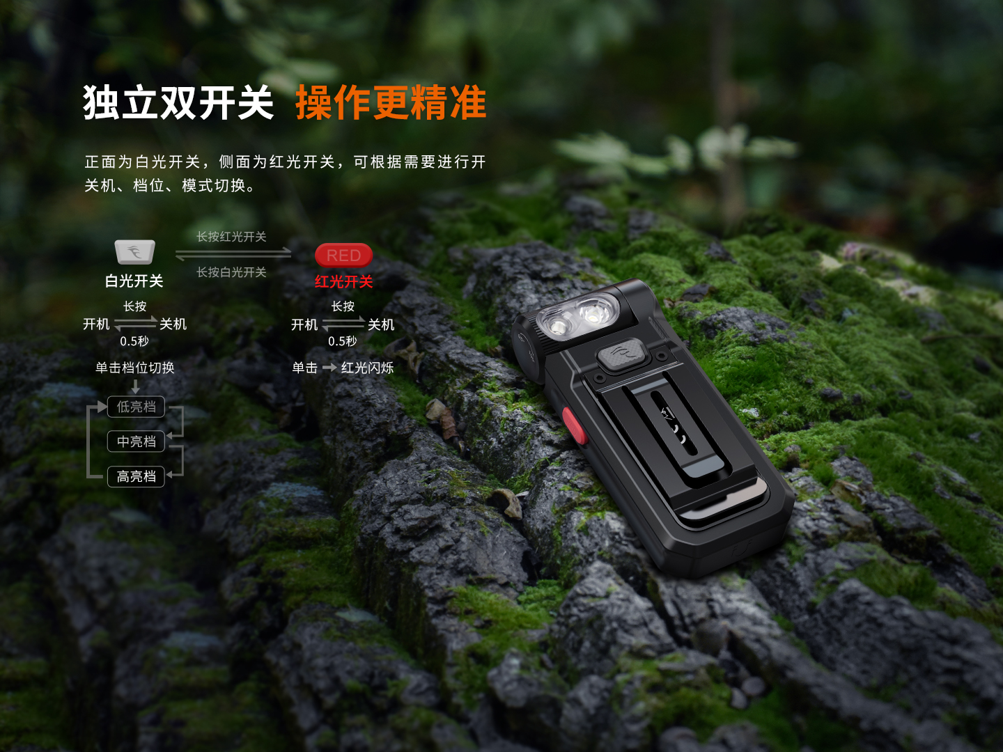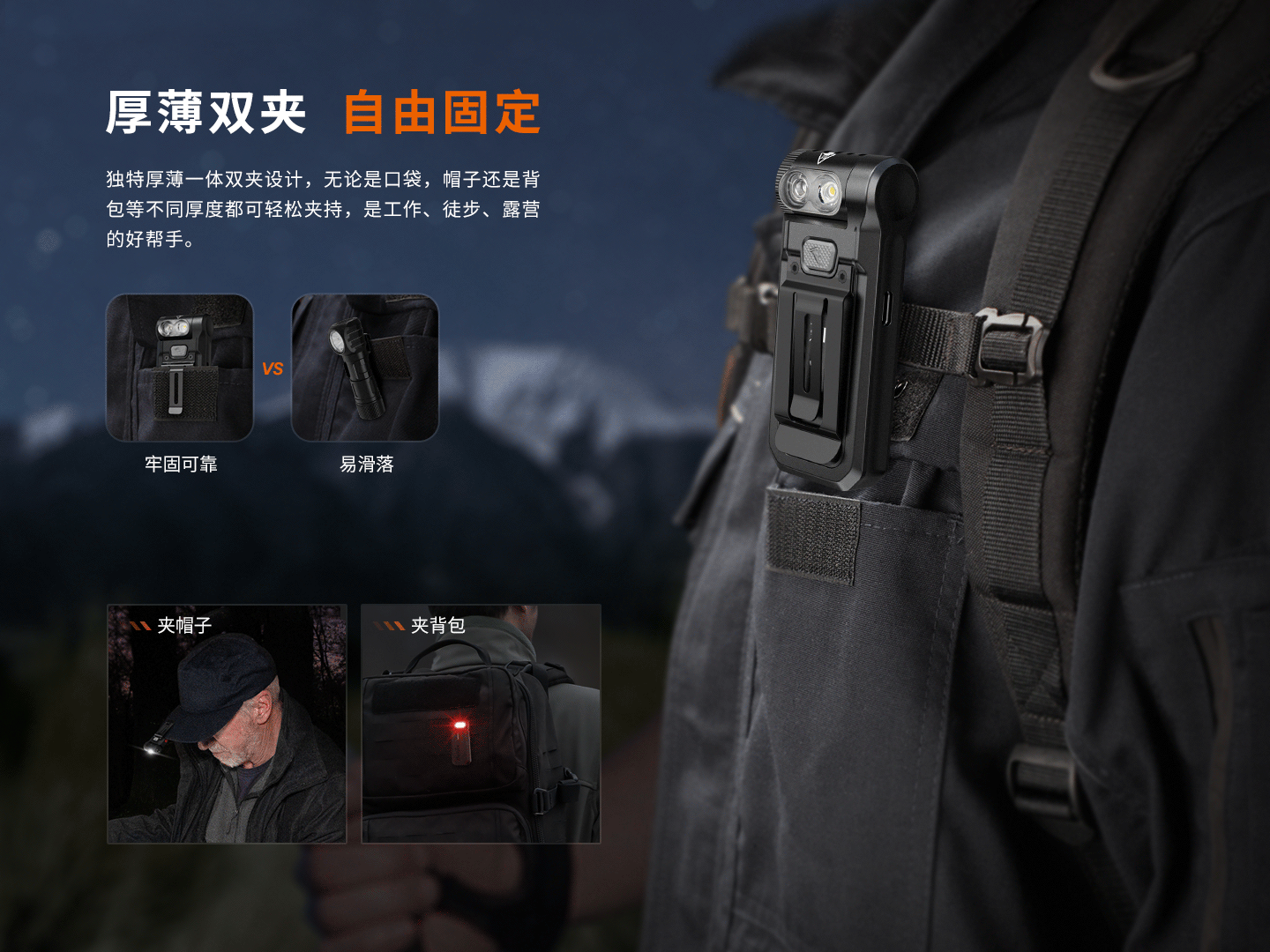 一體厚、薄雙夾設(shè)計(jì),更好的兼容口袋、帽檐等不同厚度夾持。