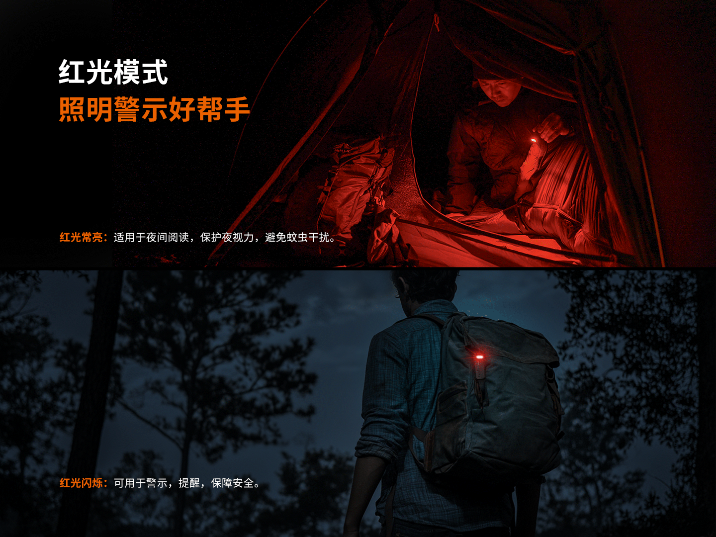 白光/紅光雙光源設(shè)計(jì),一燈多用途。