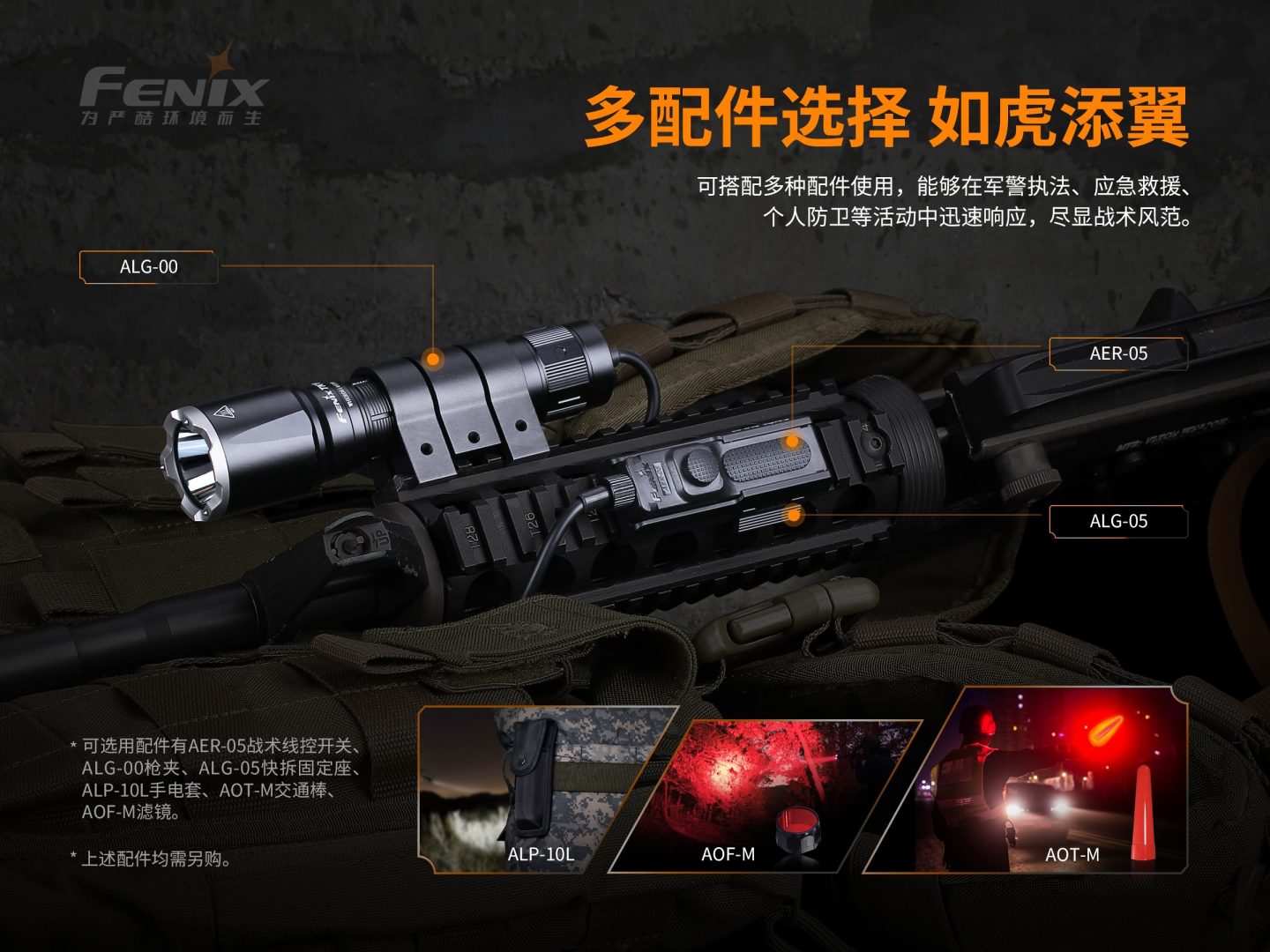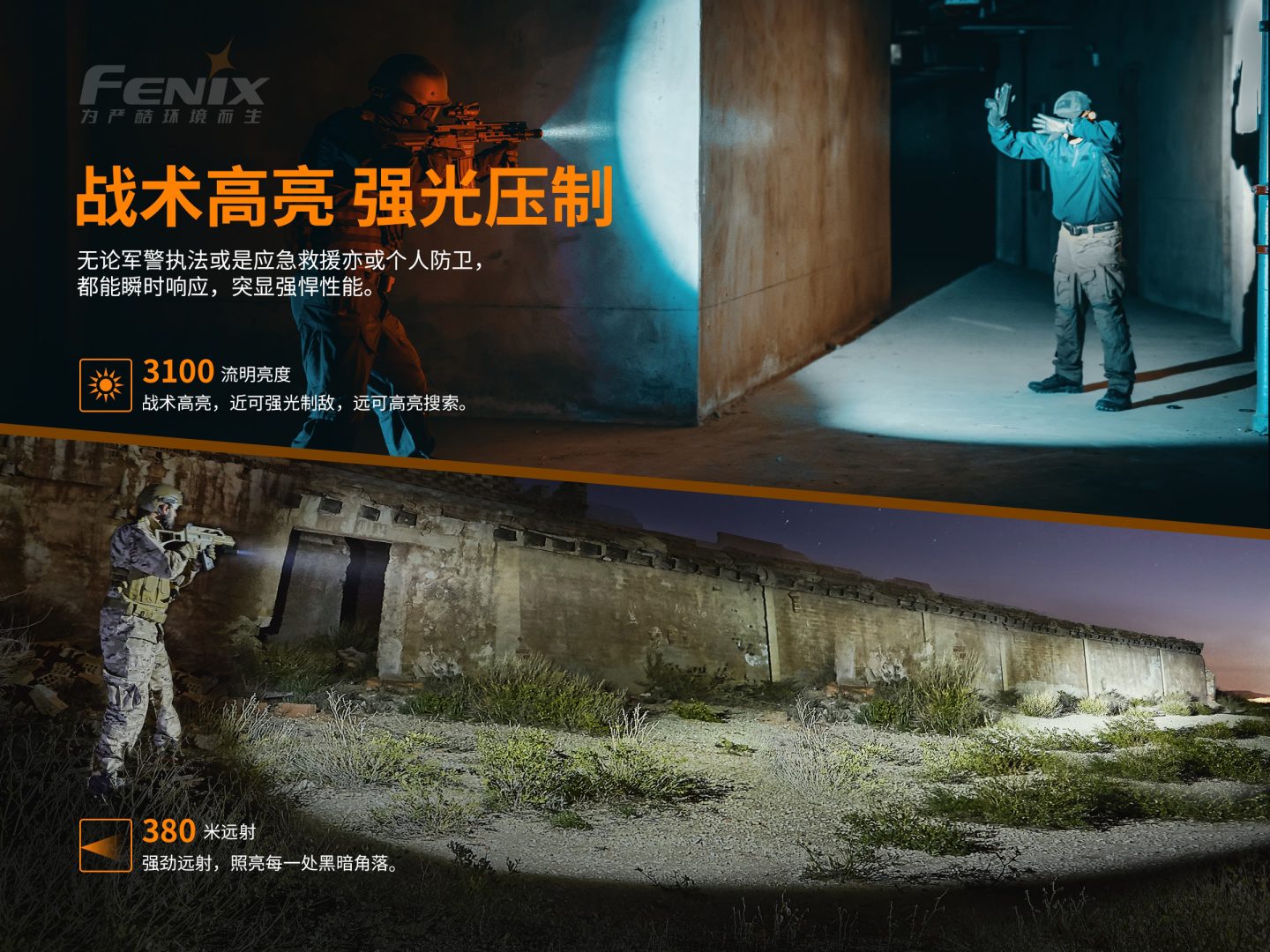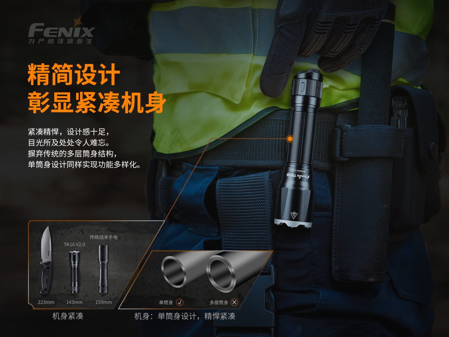 TK16 V2.0 采用Luminus SST70 LED,標配一節(jié)21700鋰離子電池。最高亮度可達3100流明,最遠射程380米。采用APF先進脈沖頻率傳輸系統(tǒng),突顯戰(zhàn)術(shù)優(yōu)勢。戰(zhàn)術(shù)雙尾按設(shè)計,快速實現(xiàn)一觸即亮、一鍵爆閃等功能,能夠在軍警執(zhí)法、應(yīng)急救援、個人防衛(wèi)等活動中迅速響應(yīng),盡顯戰(zhàn)術(shù)風范。