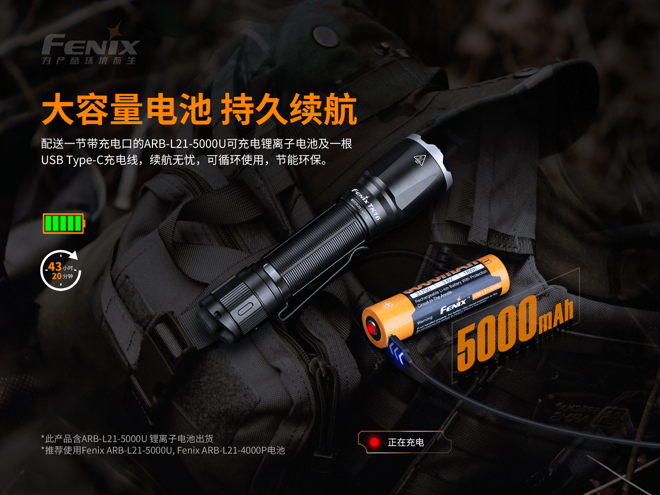 請使用指定Fenix ARB-L21-5000U電池、Fenix ARB-L21-4000P電池驅(qū)動本手電。
