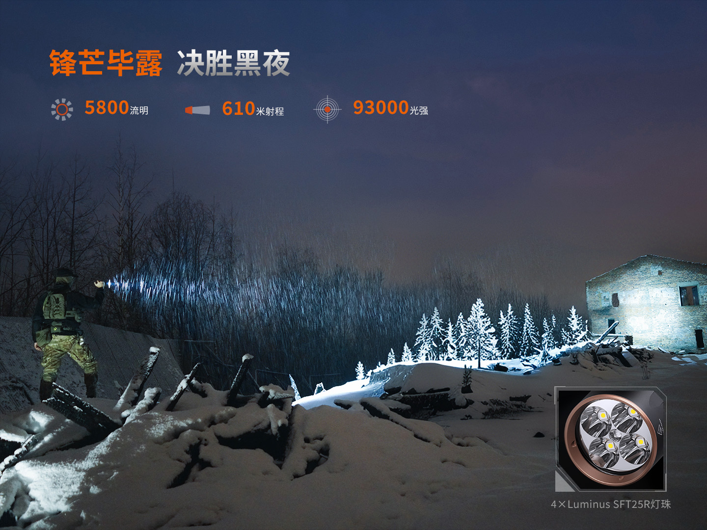 - 5800流明? 射程610米最高亮度5800流明,最遠(yuǎn)射程610米