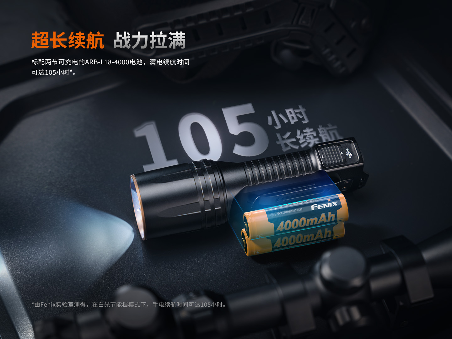 - 超長續(xù)航 充一次頂半月配送兩節(jié)可充電的ARB-L18-4000電池,通過機身Type-C接口進(jìn)行充電